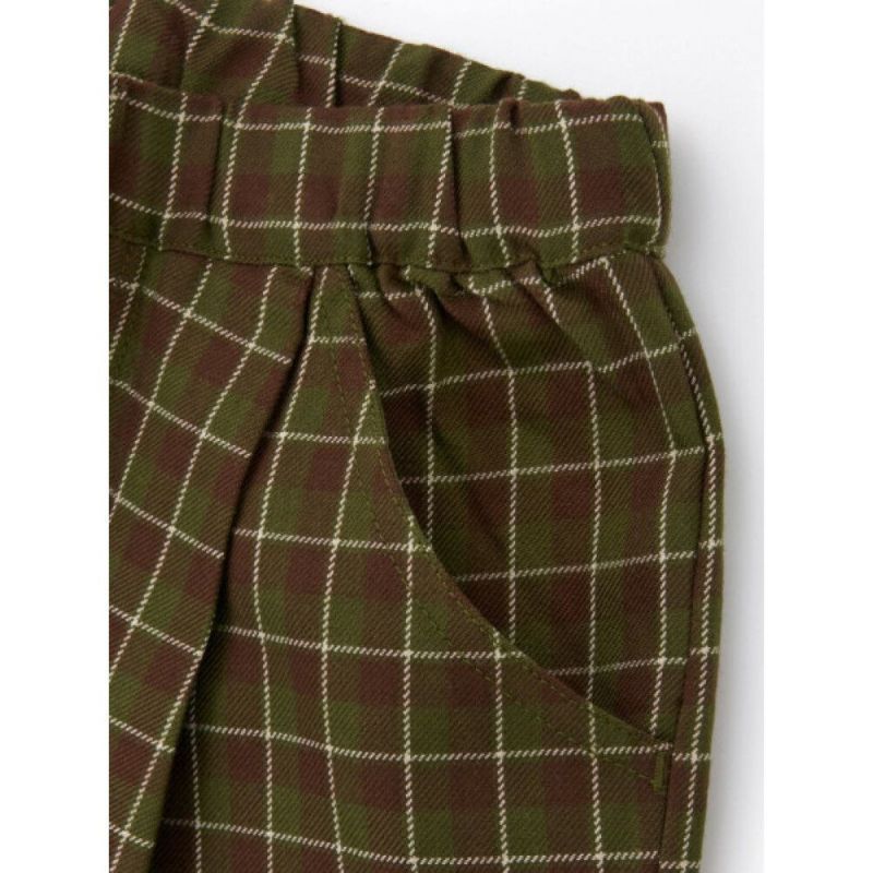 [オーシャン&グラウンド] チェックテーパードタックパンツ オリーブ(OL)