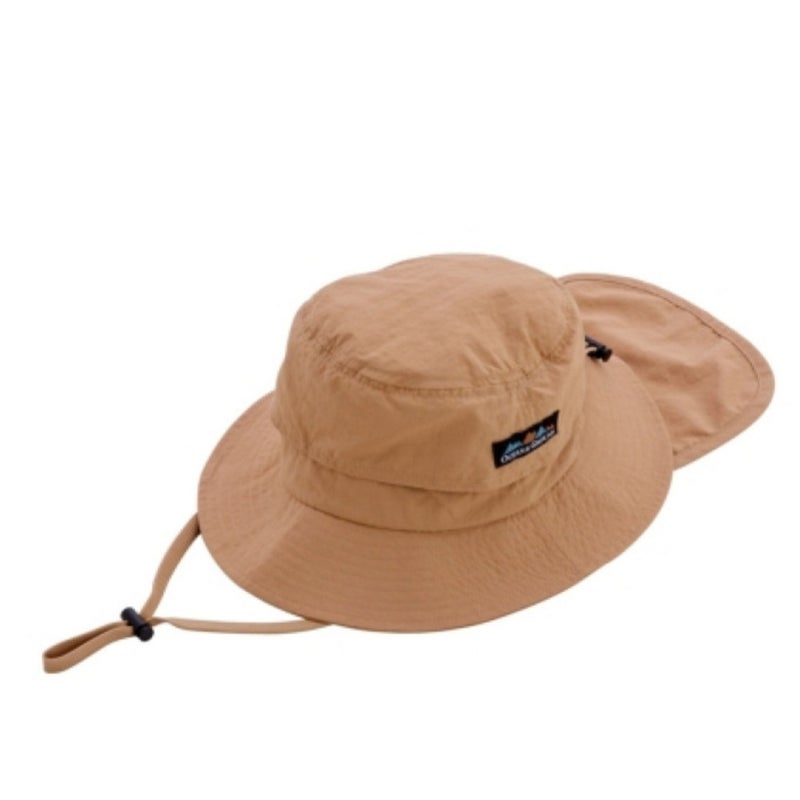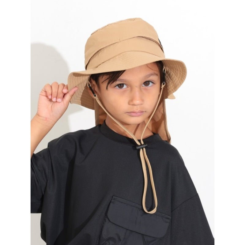 首元の日除け布は、本体収納可能。あごひもは取り外し出来ます。