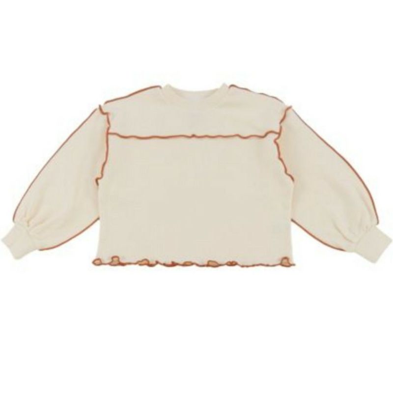 ボリューム袖と短めの着丈がトレンド感満載。