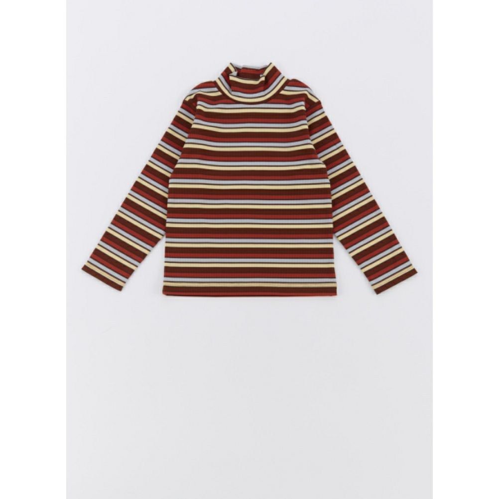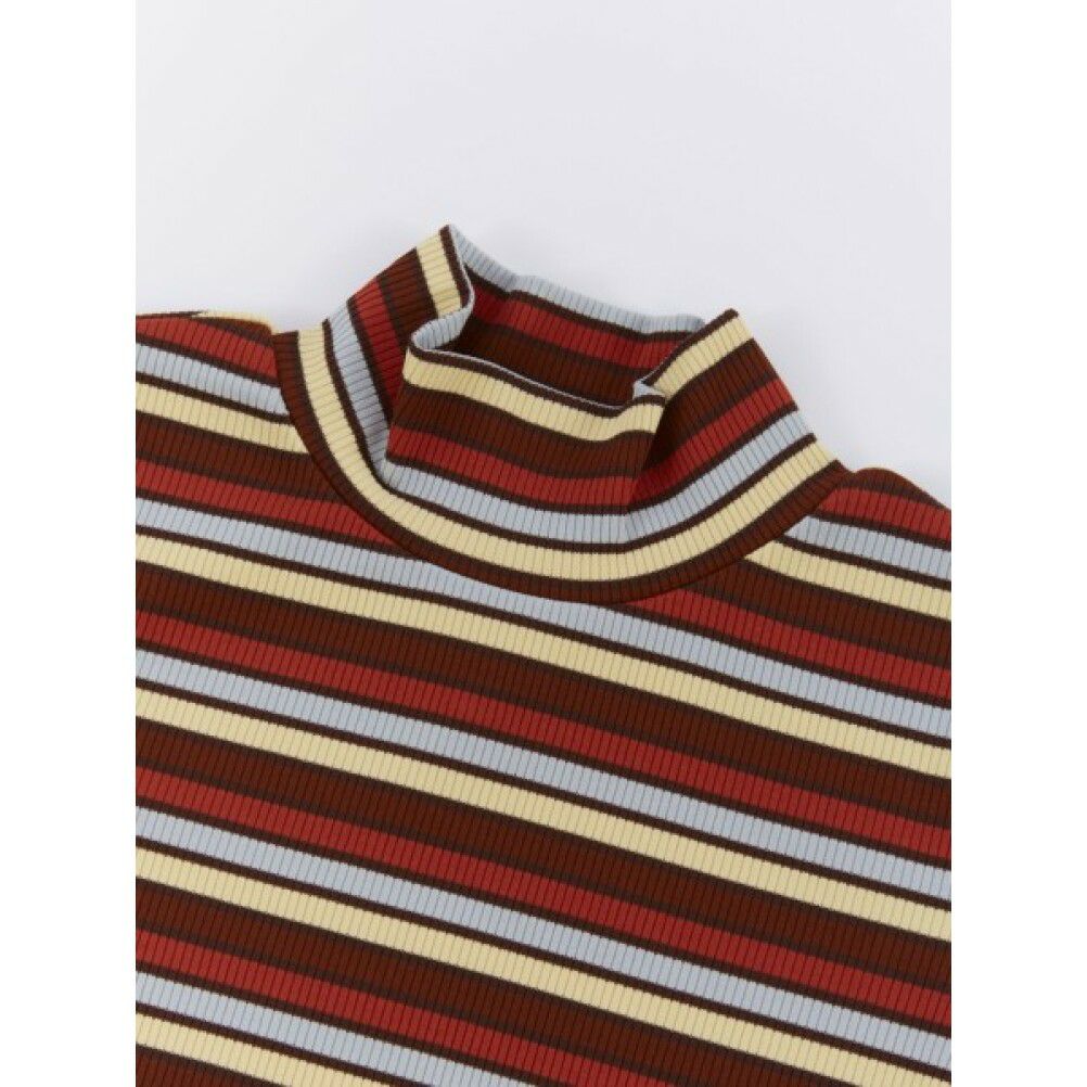 3. [オーシャン&グラウンド] タートルネックボーダーリブTシャツ ブラウン(BR)