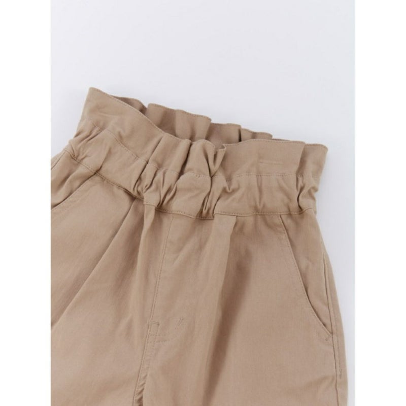 ウエストのフリルをアクセントに、ガーリーな印象のテーパードパンツ。