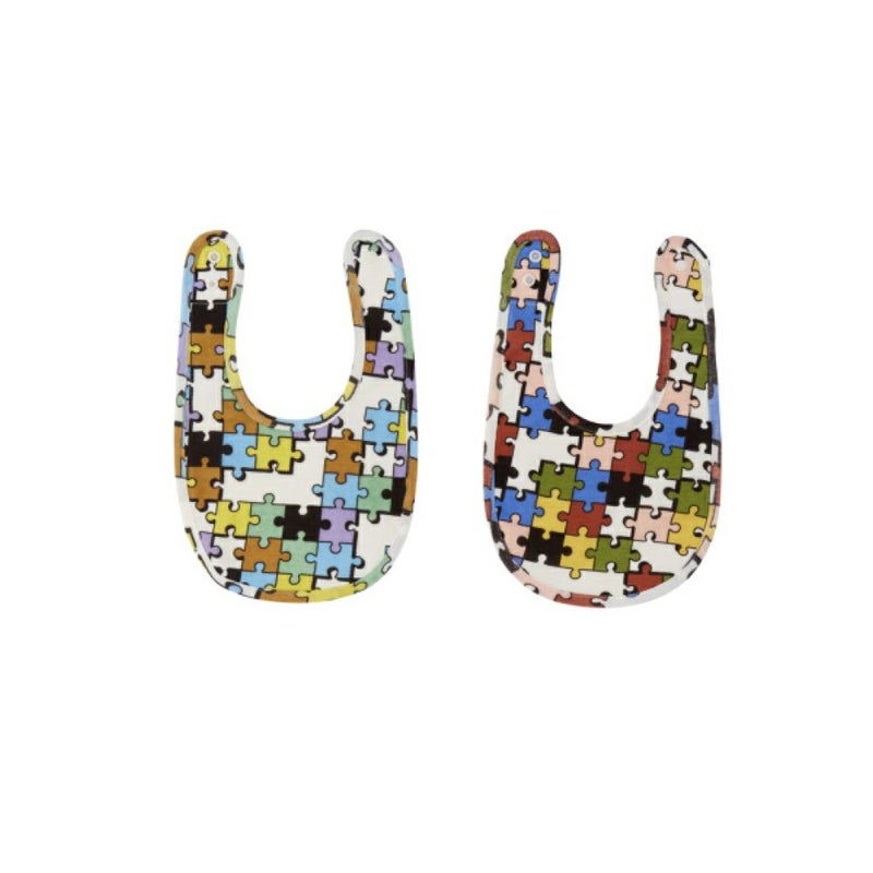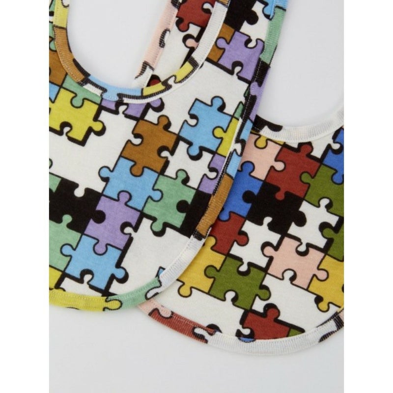 カラフルなカラーリングで、ラフなタッチがポップなパズル総柄スタイ。