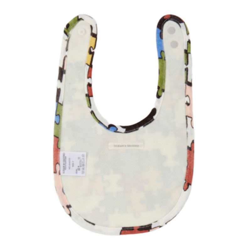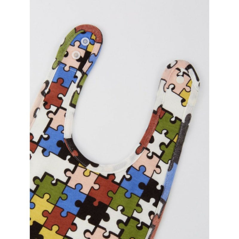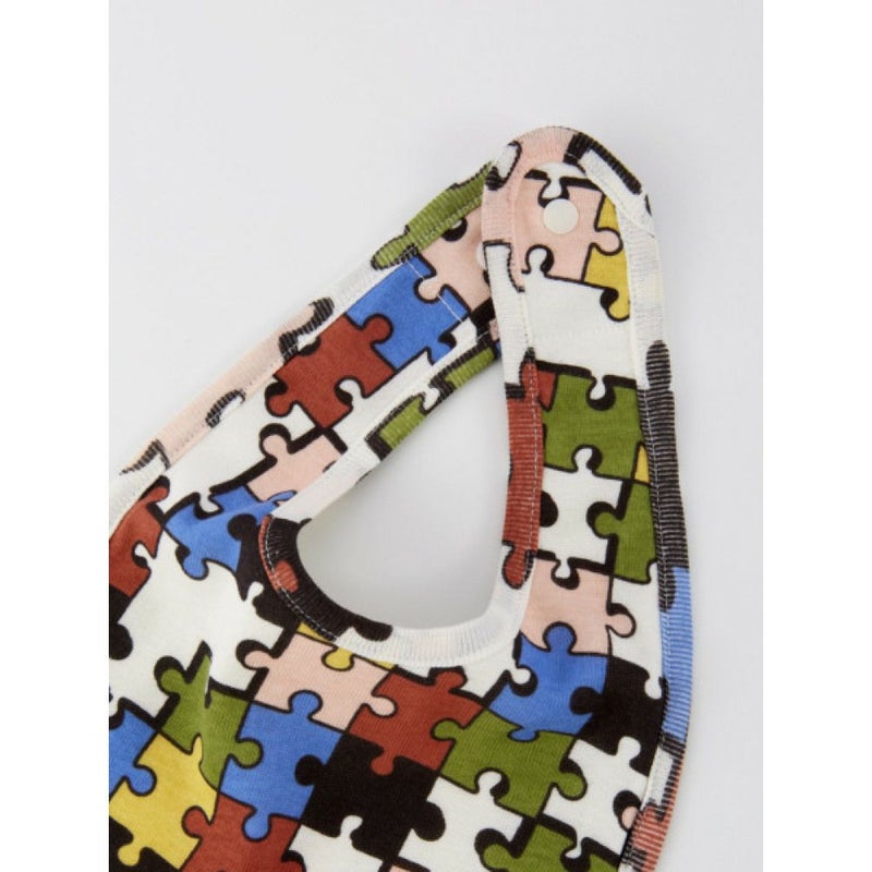 カラフルなカラーリングで、ラフなタッチがポップなパズル総柄スタイ。