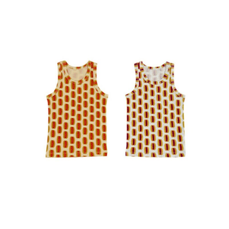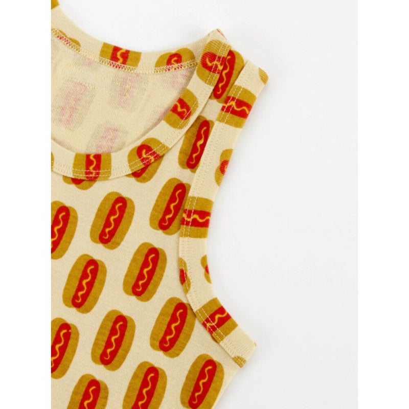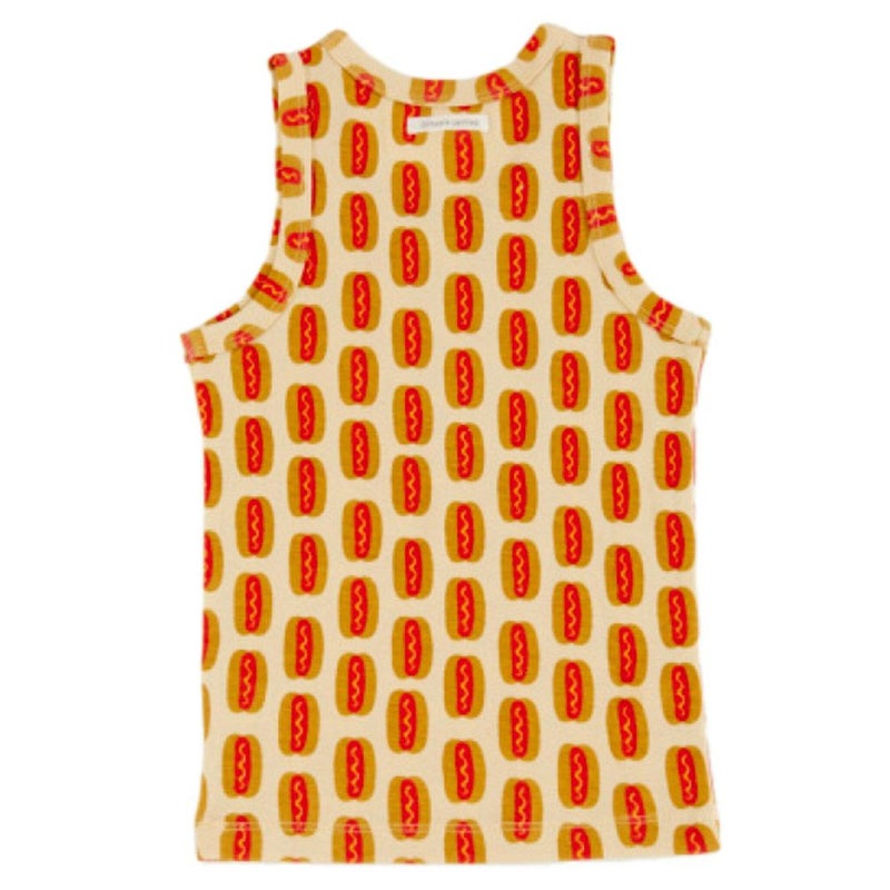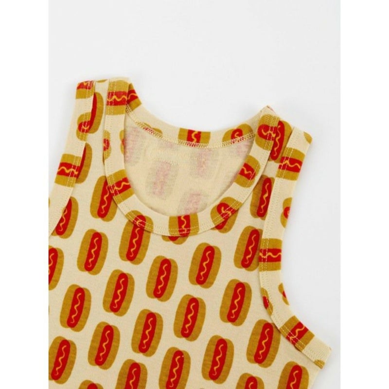 ホットドッグがプリントされたキャッチーな総柄タンクトップ。