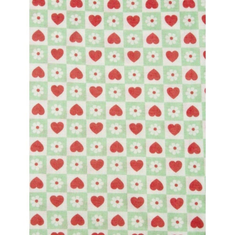 ハートとお花のモチーフが入ったチェッカー柄が目を惹く1枚。