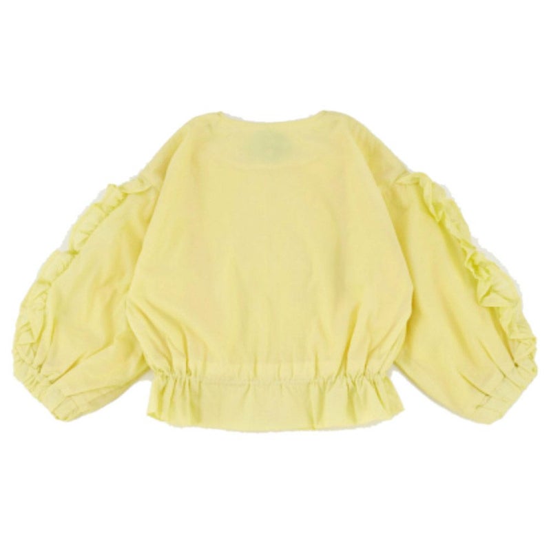 短めの丈感とボリューム袖のバランスがトレンド感を演出しています。