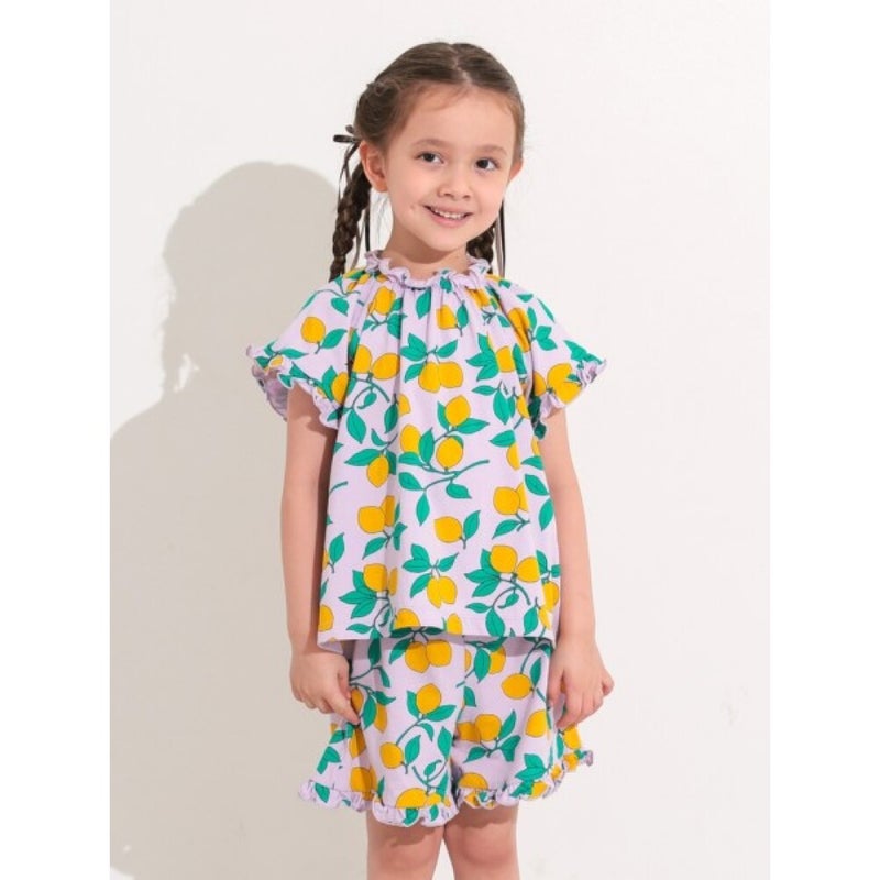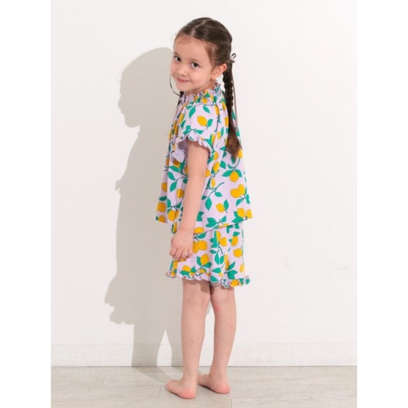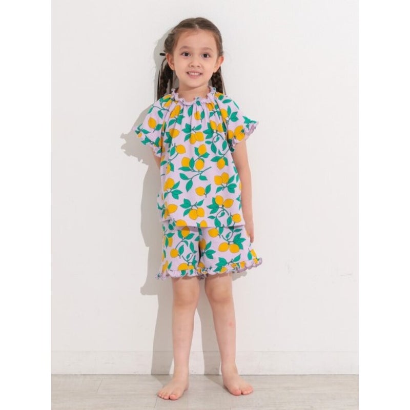 [オーシャン&グラウンド] GIRL’Sフリルソウガラ半袖パジャマ ライトパープル(LP)