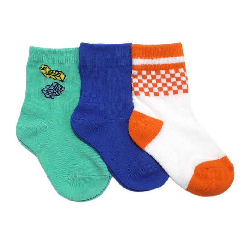 ブロック柄、無地、チェックとデザインの違う3足がセットに。