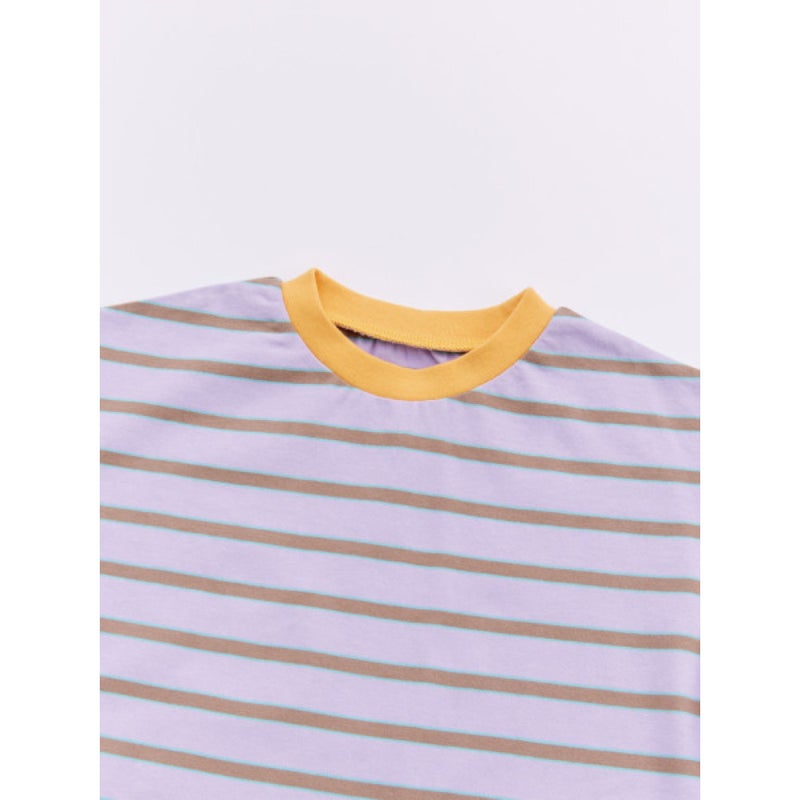 6. [オーシャン&グラウンド] ボーダーワイドTシャツ ライトパープル(LP)