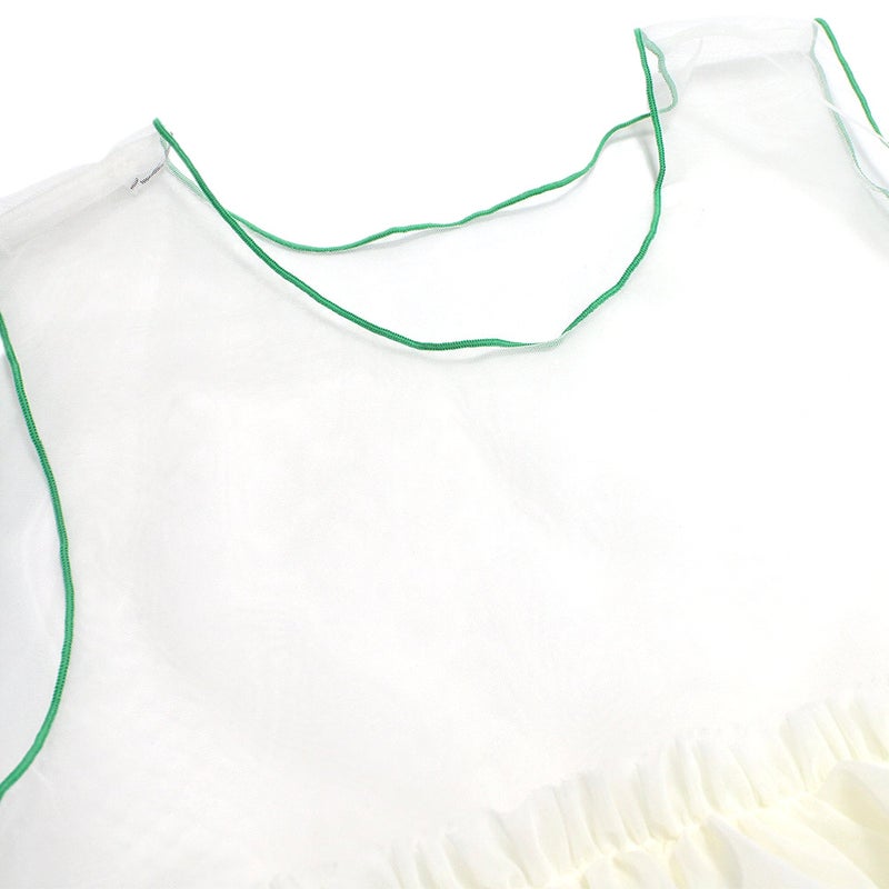 透け感のある素材にバイカラーの縁取りがポイントに。