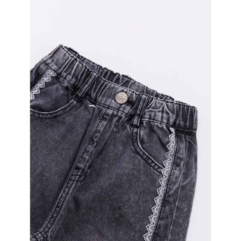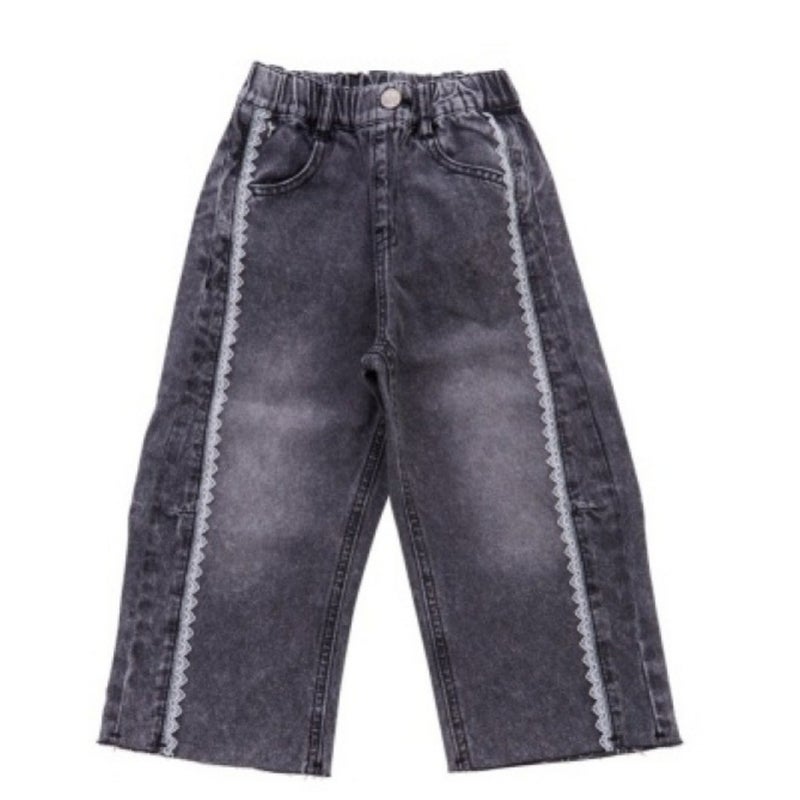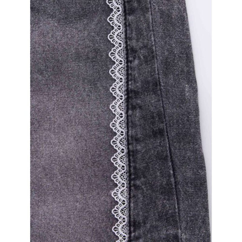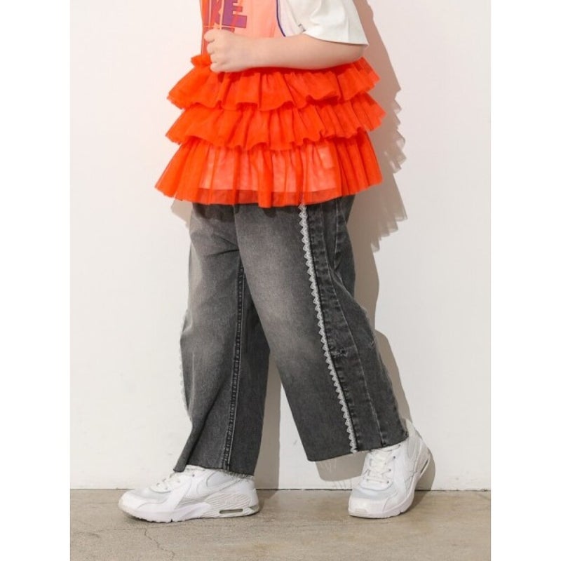 切り替えに挟んだレースがポイントのデニムパンツ。