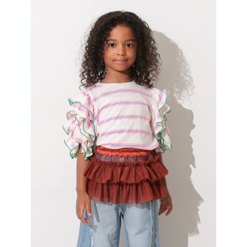 3. [オーシャン&グラウンド] チュールフリル飾りスカート ブラウン(BR)