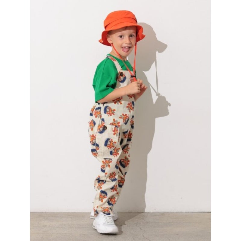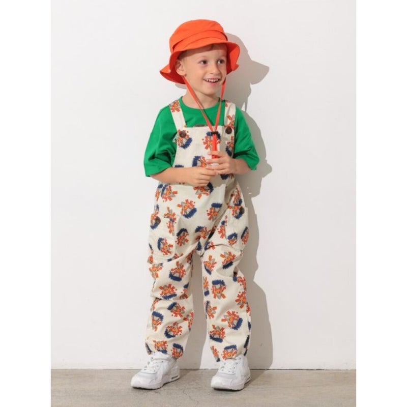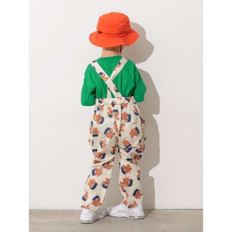 カラフルでポップな総柄デザインがコーディネートの主役になるサロペット。