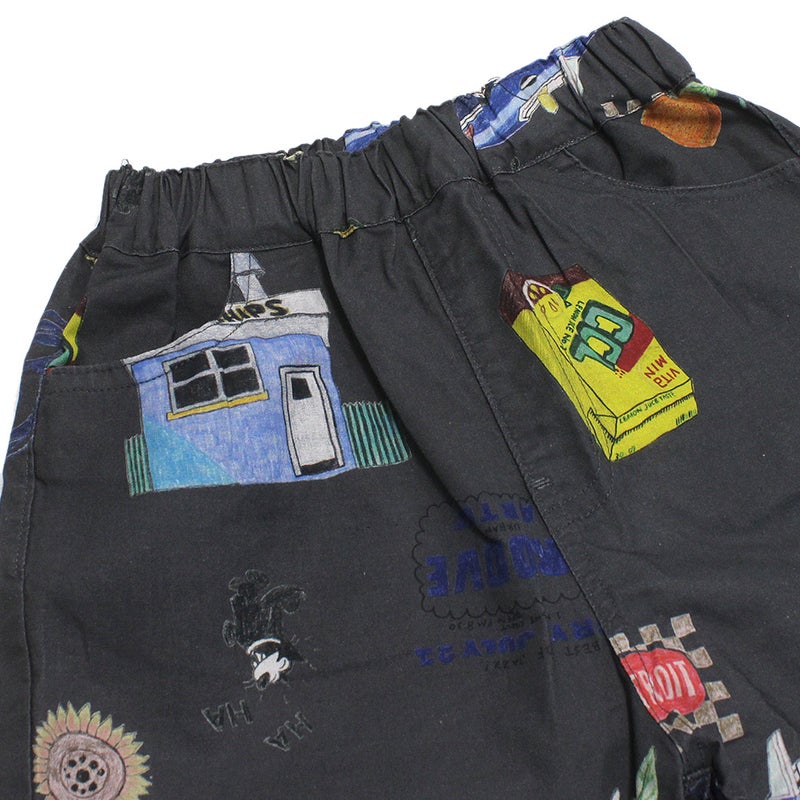 手描き風のイラストをプリントした総柄ショーツ。