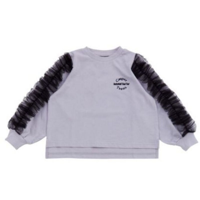 キラッと光るチュール素材のフリルが目を引く長袖Tシャツ。