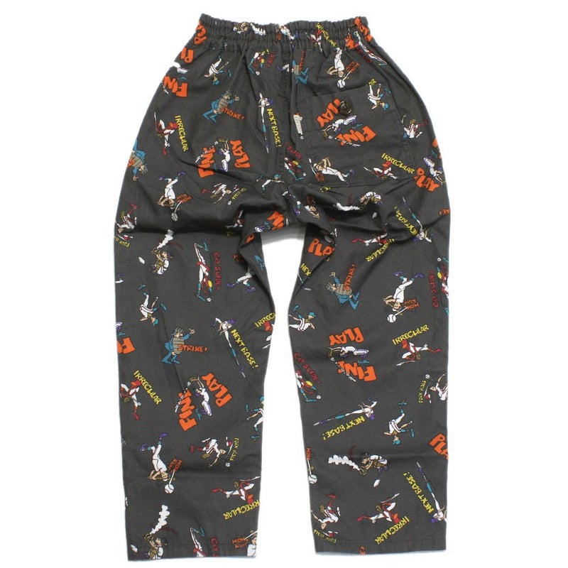 ベースボールモチーフの総柄パンツ。