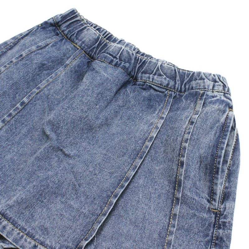 フロントはプリーツスカート見えするデニムショートパンツ。