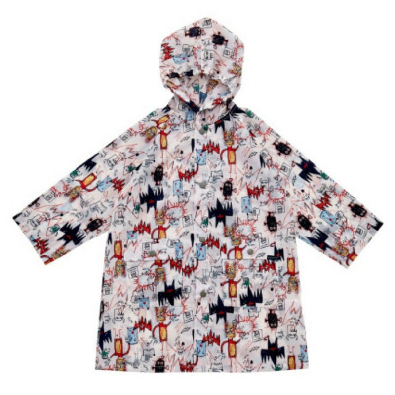 賑やかな総柄が目を引くレインコート