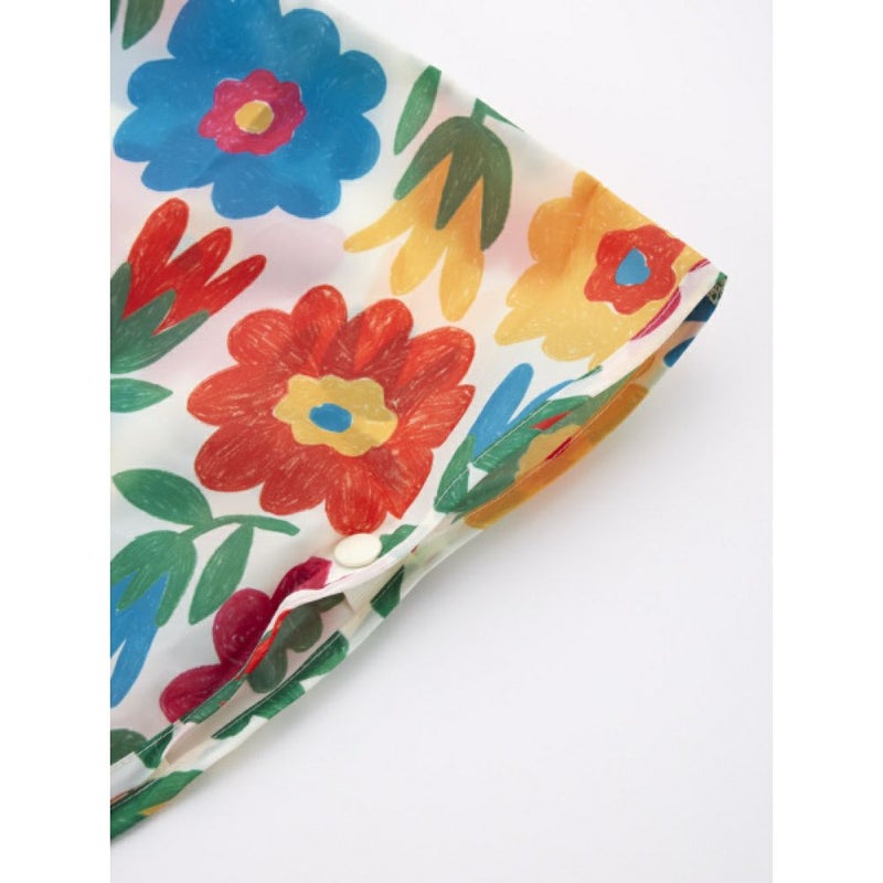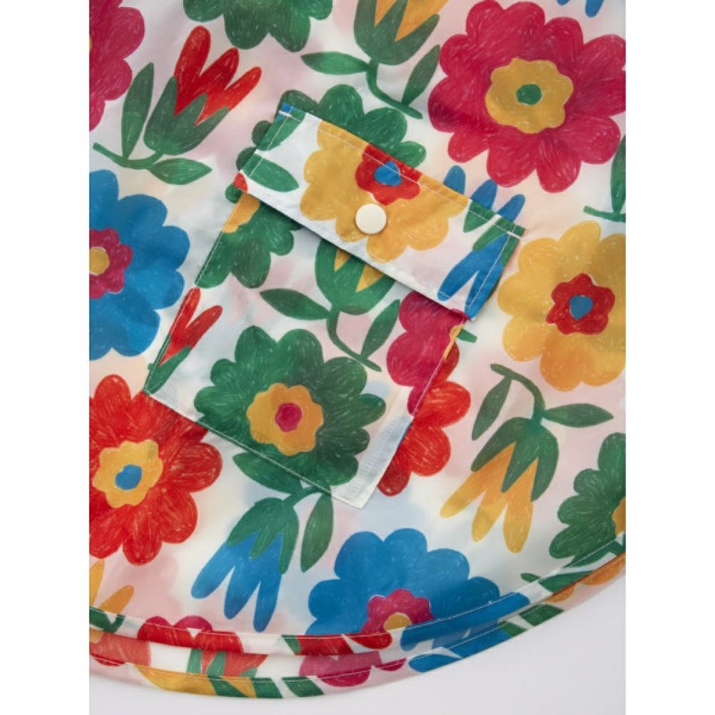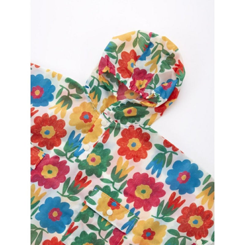 賑やかな総柄が目を引くレインポンチョ。