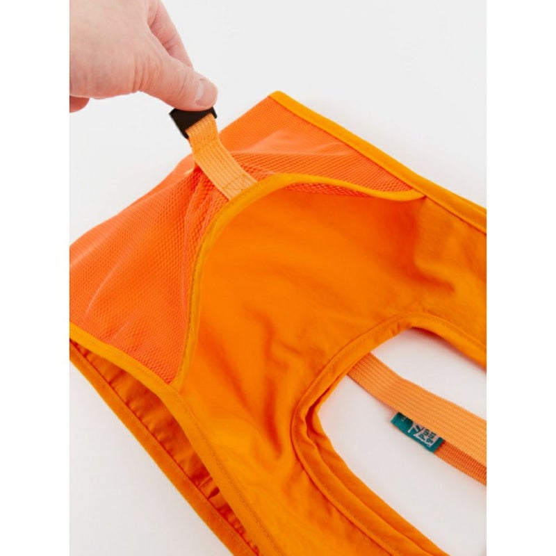丈夫なナイロンリップ素材にメッシュポケット付で、アウトドアやレジャーシーンでも活躍します。