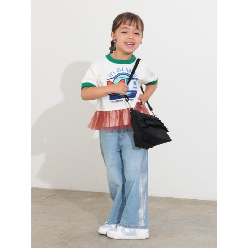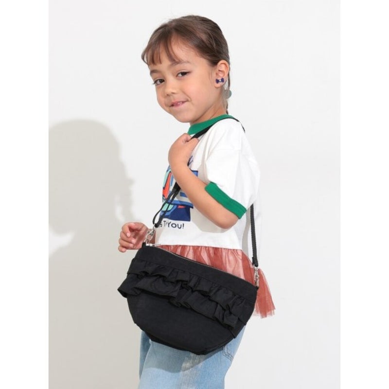 カジュアルなナイロン素材にガーリー要素をプラスしたフリルショルダーバッグ。