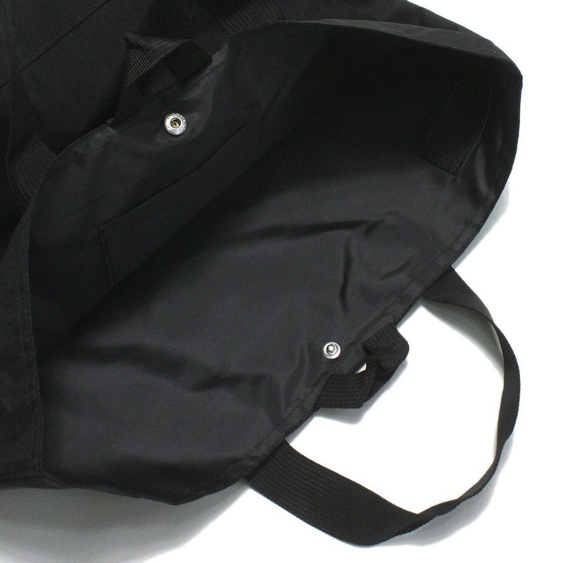 内側に小物を収納できるポケットもあり、開口部はスナップボタン付きです。