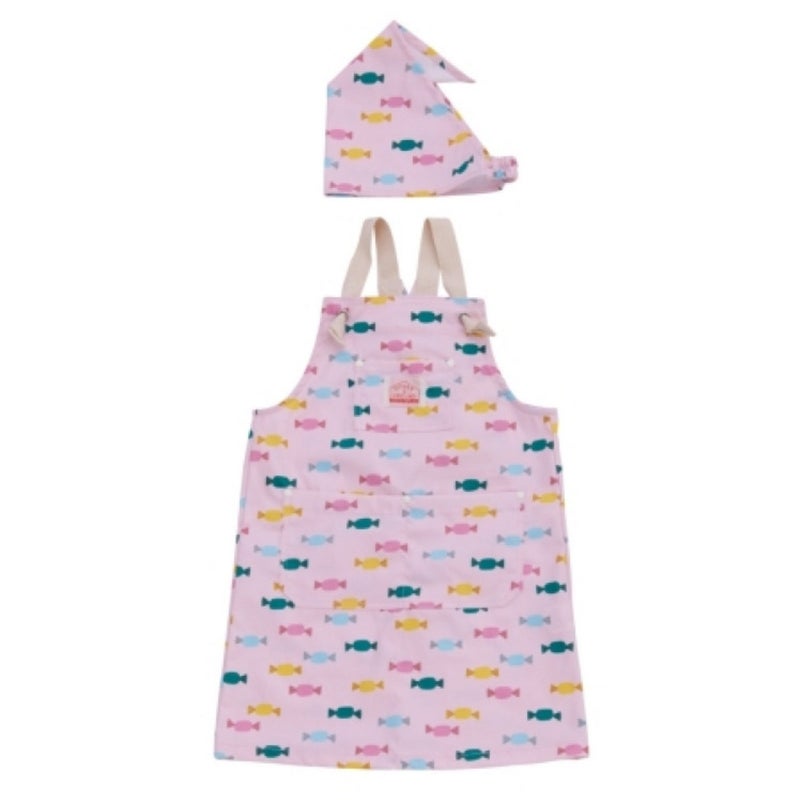 お手伝いや幼稚園、小学校の実習が楽しくなる、総柄エプロンSET。