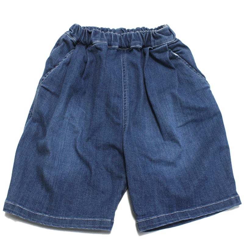 伸縮性があり柔らかい穿き心地のカットデニムパンツ。