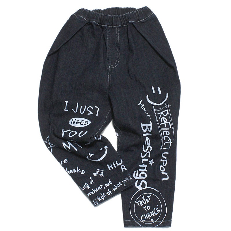 “オフィシャルチーム”のカットデニムラクガキスマイルタックワイドパンツ