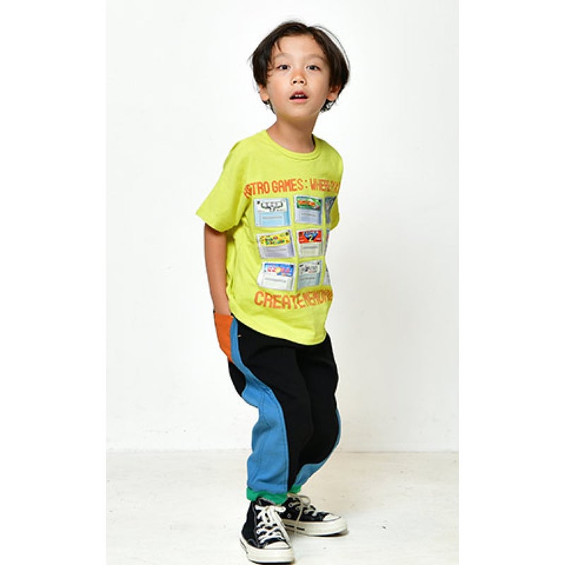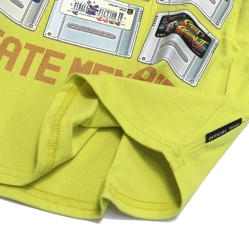 懐かしいゲームカセットが目を惹く半袖Tシャツです。
