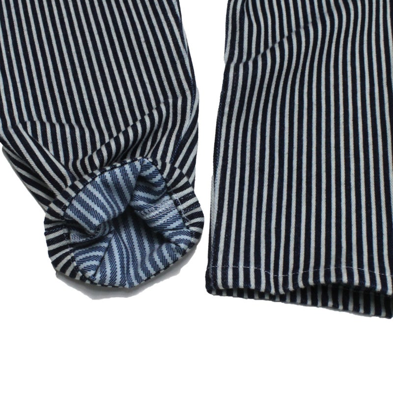 ブラックデニムにヒッコリーの切り替えが個性的なデザインです。