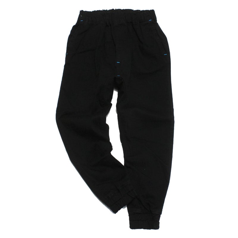 裾ゴム入りで動きやすいジョガーパンツ。