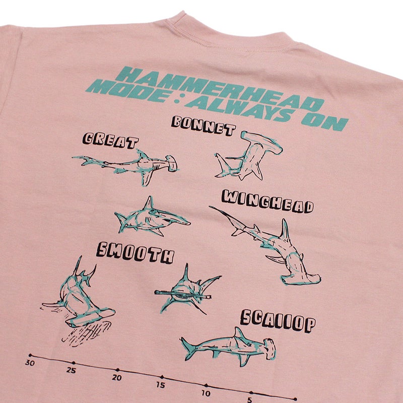 バックにはいろんな種類のサメをプリントしたTシャツ。