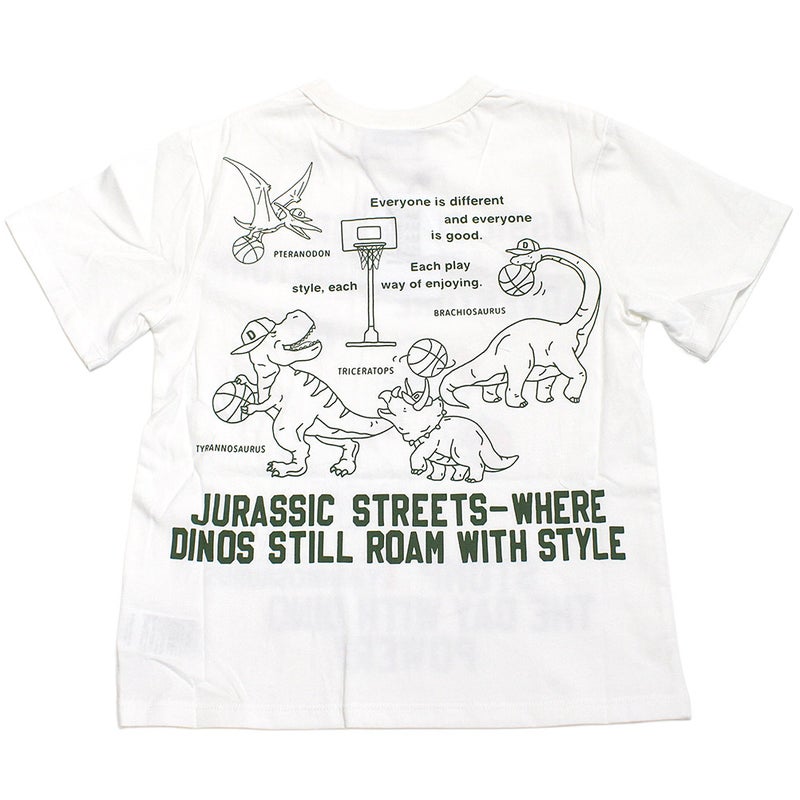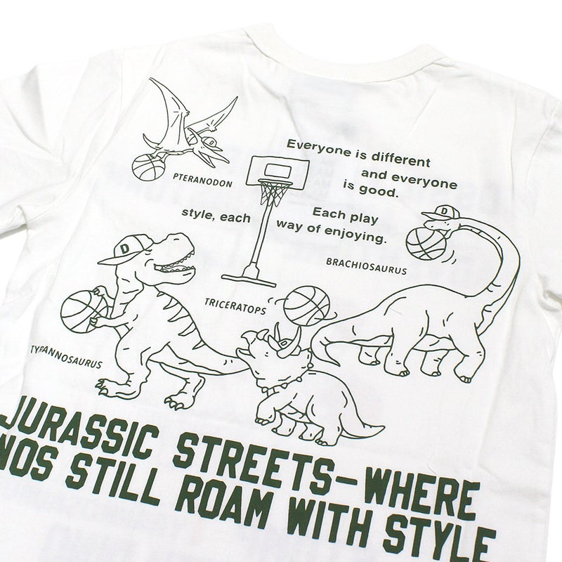 フロントはボディのカラーごとに異なる恐竜をプリントしています。