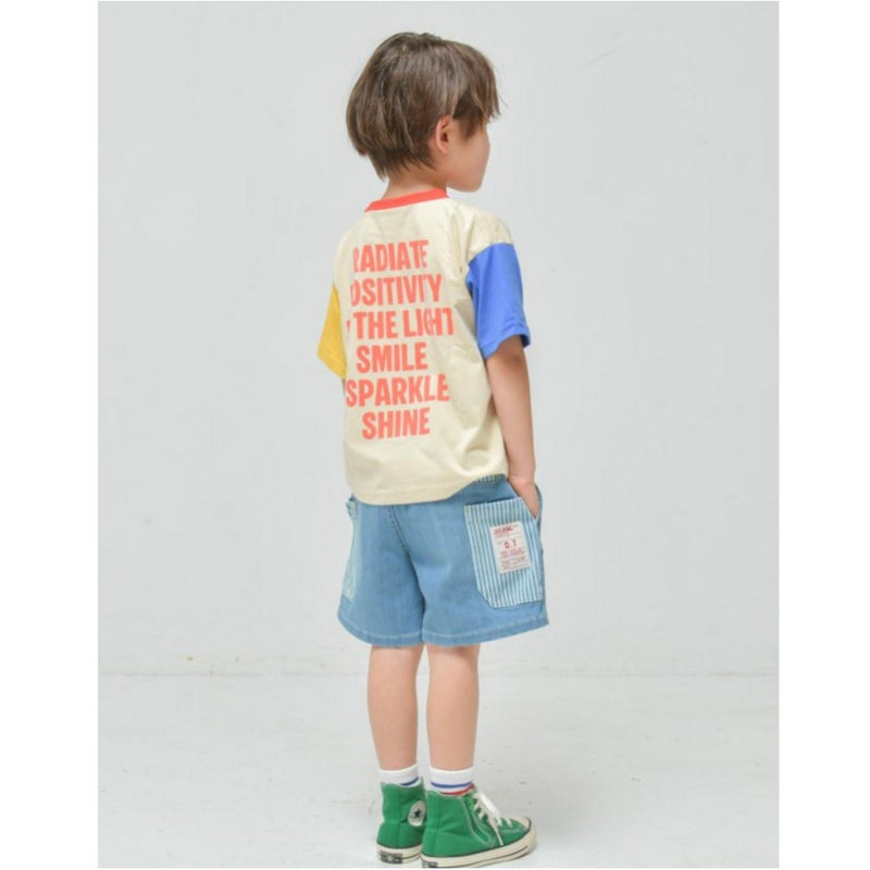 ポケットをヒッコリーで切り替えたデニムショーツ。