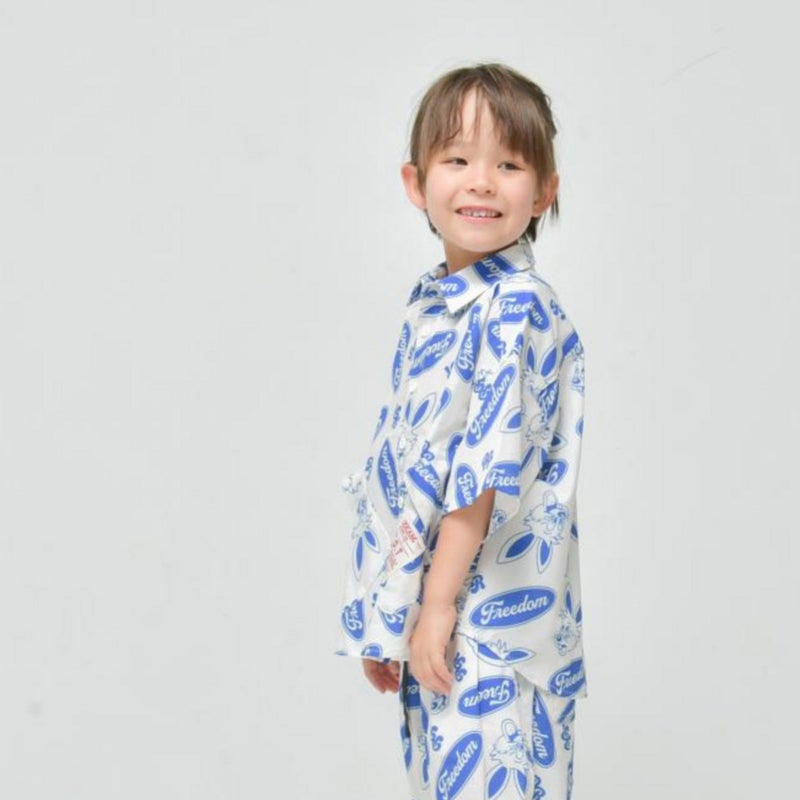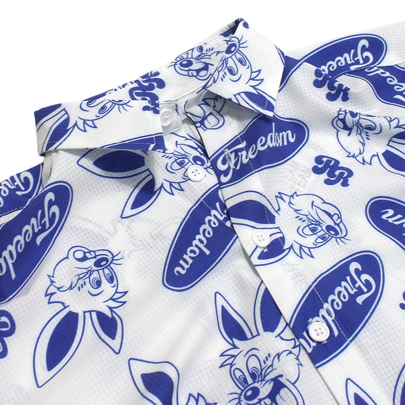 ポップな総柄デザインの半袖シャツ。
