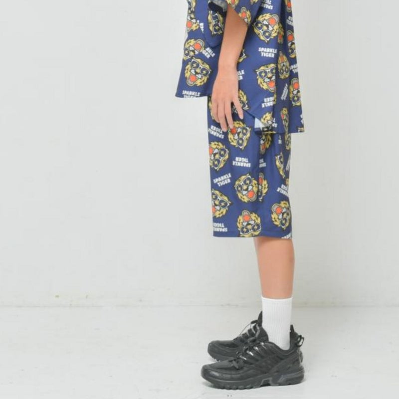 インパクトのある総柄デザインのハーフパンツ。