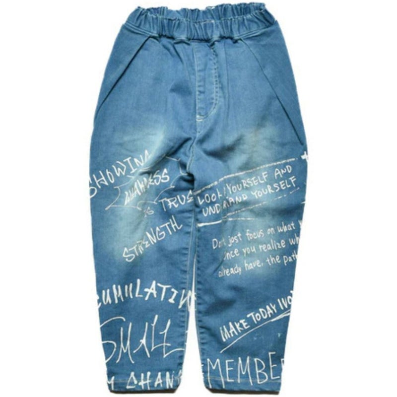 全体に落書き風のプリントを施したインパクトのあるパンツ。