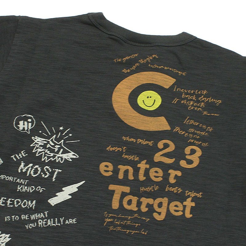 バックの手書き風のプリントが印象的な1枚。
