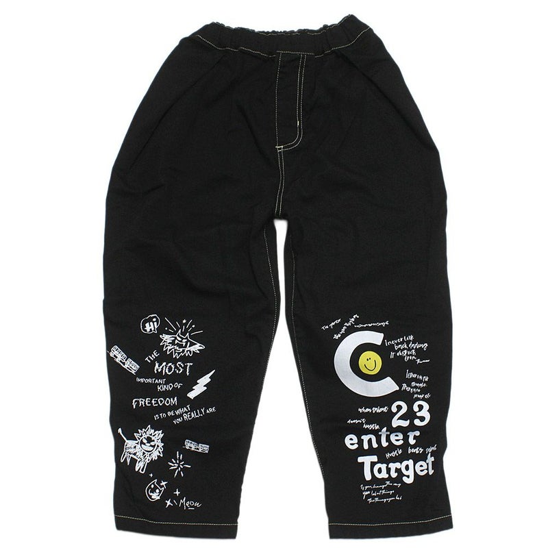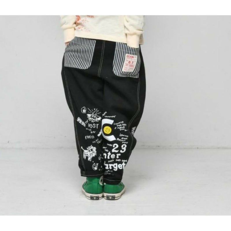 裾にプリントを施したデニムパンツ。