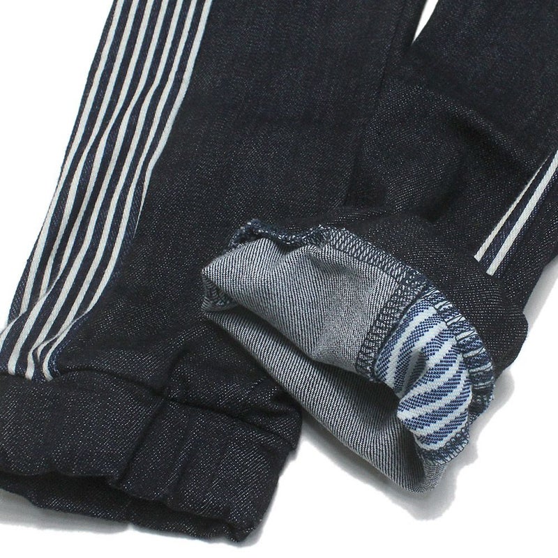 ヒッコリー生地のポケットやラインがアクセント。