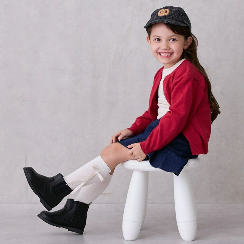 パール調のボタンがさりげなく上品に輝くニットカーデ。