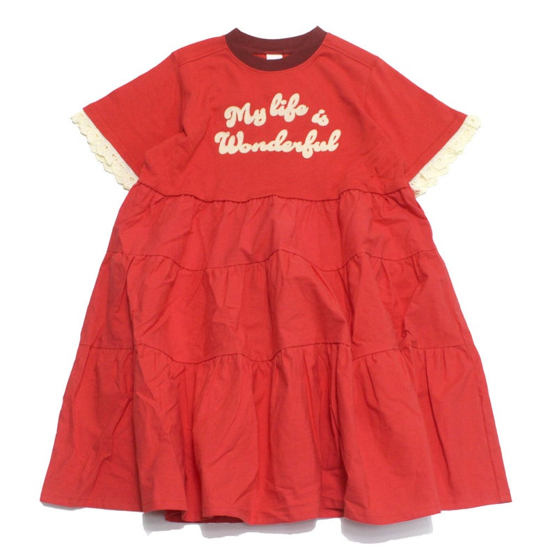 “ピードットプルミエ”のフェルトロゴリンガーTティアードワンピース
