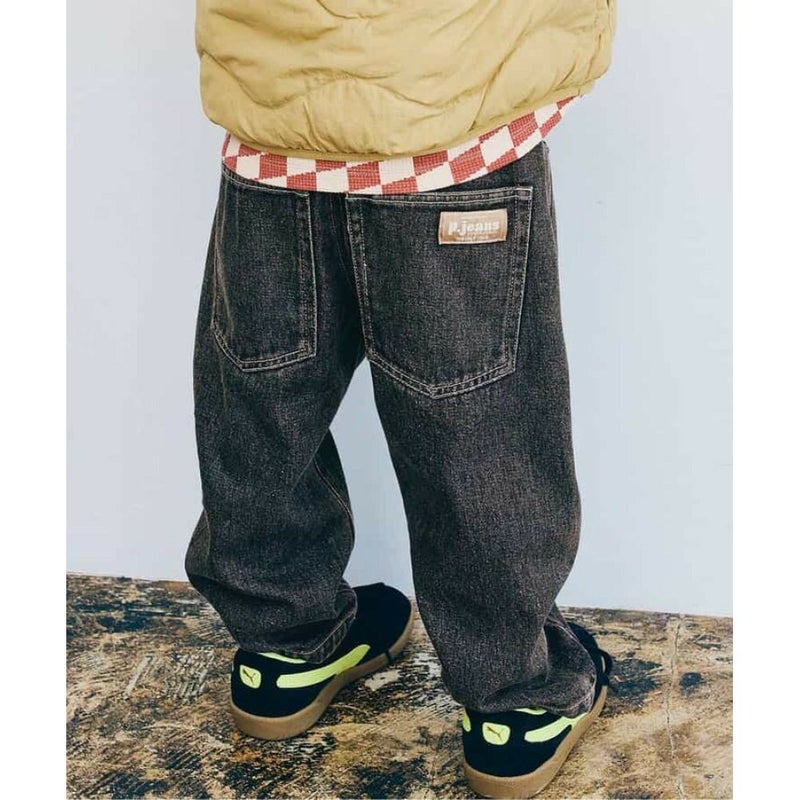[ピードットプルミエ] ワイドストレートジーンズ ブラック(BK)