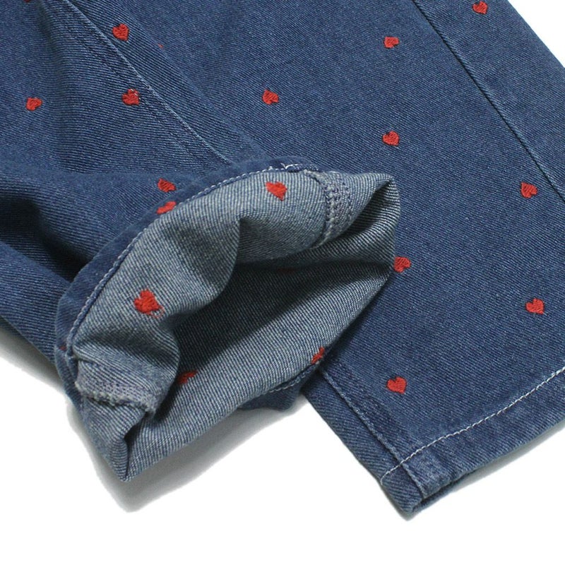 デニム素材にハートの総刺しゅうをプラス。