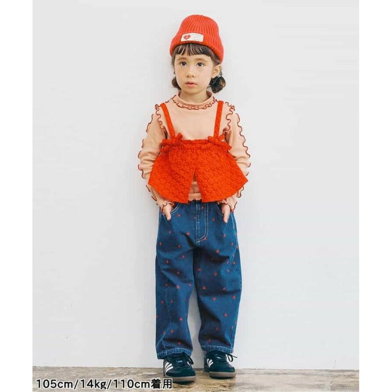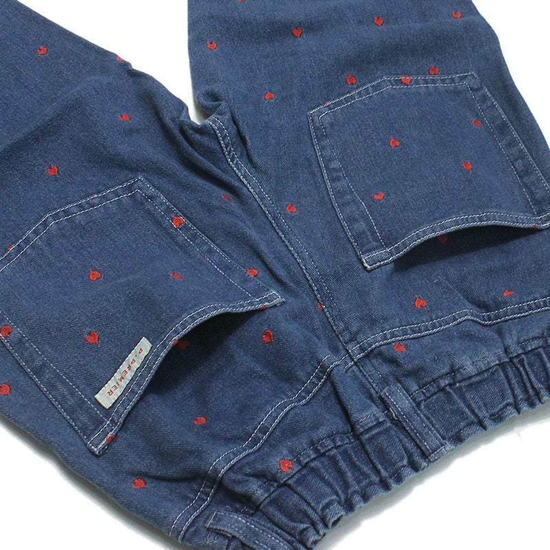 “ピードットプルミエ”のハート刺繍のワイドストレートジーンズ