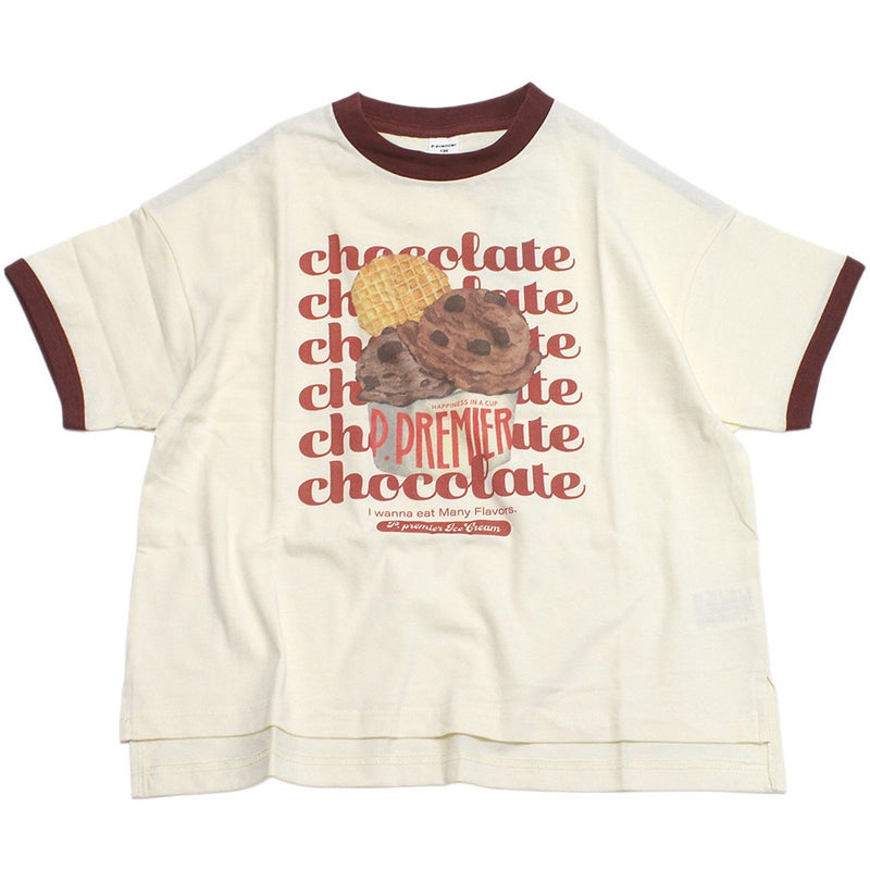 [ピードットプルミエ] いろんなアイスちょーだいグラフィックリンガーTシャツ ブラウン(BR)