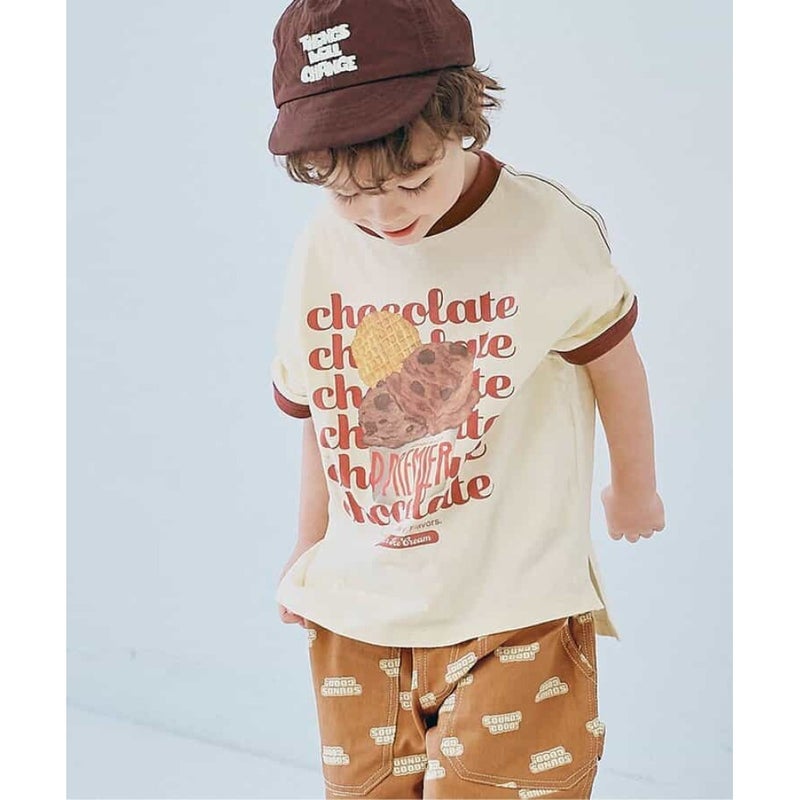 4. [ピードットプルミエ] いろんなアイスちょーだいグラフィックリンガーTシャツ ブラウン(BR)