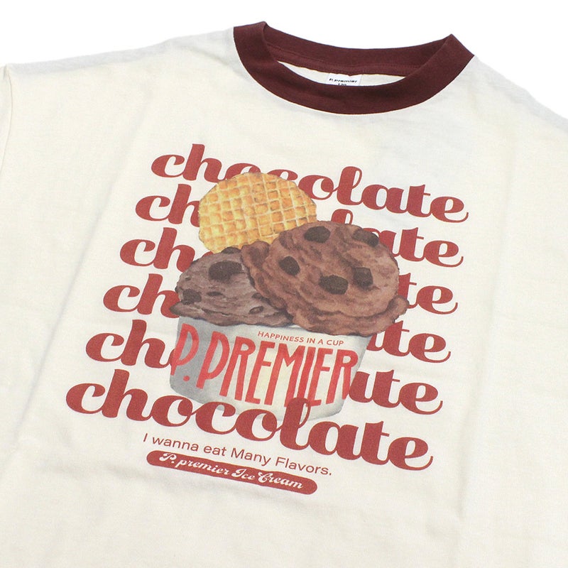 “ピードットプルミエ”のいろんなアイスちょーだいグラフィックリンガーTシャツ