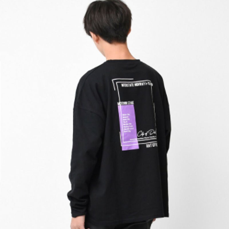 [ラットエフェクト] ネオンプリント ロングTシャツ ブラック